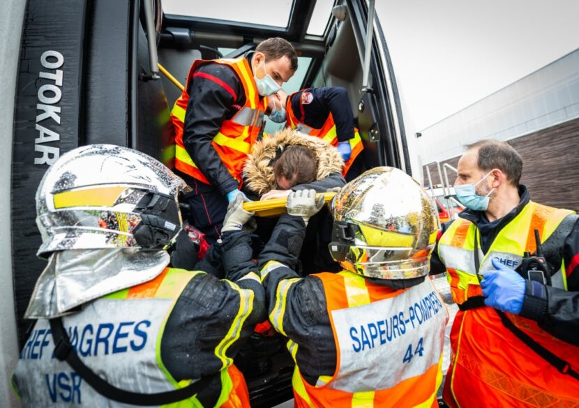 Ils ont pu, pour la première fois, se confronter à la réalité d’une prise en charge de victimes au sein d’un car couché au sol , à la suite d’un accident de la route. Prêté par la société LILA, ce simulateur de renversement d’autobus est habituellement utilisé auprès des élèves de collèges et lycées dans le cadre d’une sensibilisation à la sécurité routière. Pour les personnels des SDIS 44, il offre la possibilité de s’exercer en conditions proches du réel pour gagner en efficacité lors d’accidents de la route impliquant ce type de véhicule et assurer la bonne maitrise d’intervention.