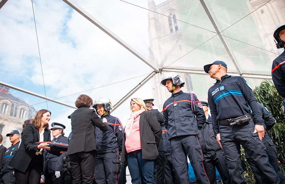 C’est avec émotion et fierté que nos sapeurs-pompiers, ayant contribué à la sauvegarde de la cathédrale Saint-Pierre et Saint-Paul le 18 juillet 2020, ont reçu la médaille d’acte de courage et de dévouement des mains de la Ministre de la Culture.